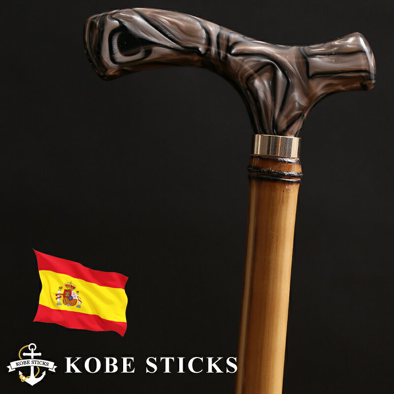 杖 おしゃれ ステッキ かっこいい つえ 敬老の日 男性 おしゃれな 高級 オシャレ 紳士 かわいい 美しい 女性 お洒落 木製 介護 杖の種類 tue sutekki 一本杖 専門店 神戸ステッキ/スペイン製 世界に1本のデザイン 上質モダンなマーブル柄ステッキ(茶グレー)