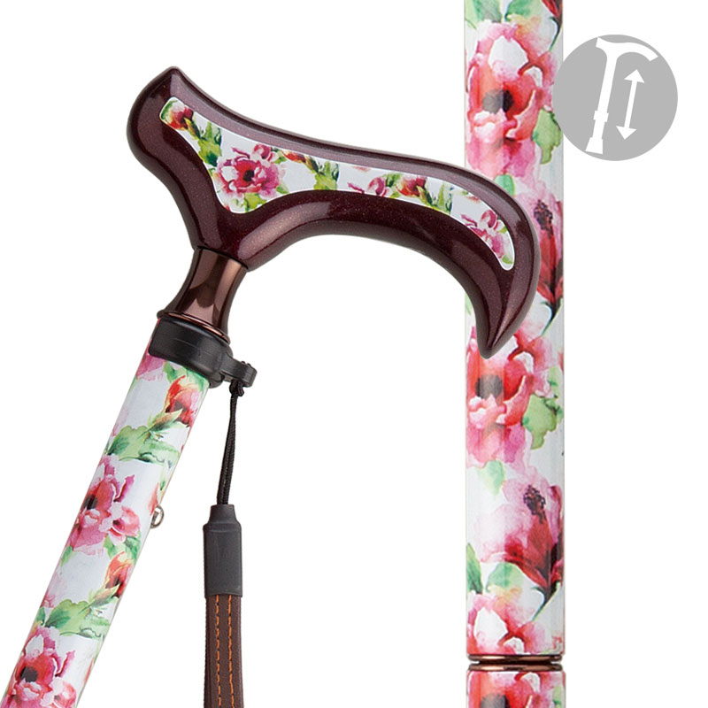 日本製 杖 女性 男性 軽量 おしゃれ かわいい 伸縮 SGマーク 艶消花柄伸縮式アルミステッキ 土屋産業 グリップ 手作り 白樫 女性用 花柄 ステッキ