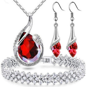 【送料無料】アクセサリー ネックレス シルバーレッドブレスレットチェーンドロップイヤリングセット