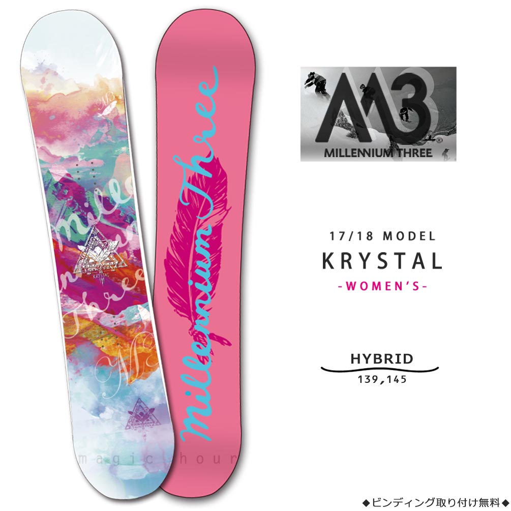 スノーボード 板 レディース 単品 2018 M3 ミレニアムスリー ハイブリッド キャンバー KRYSTAL ツインチップ グラトリ フリーラン パーク かわいい 白 ピンク
