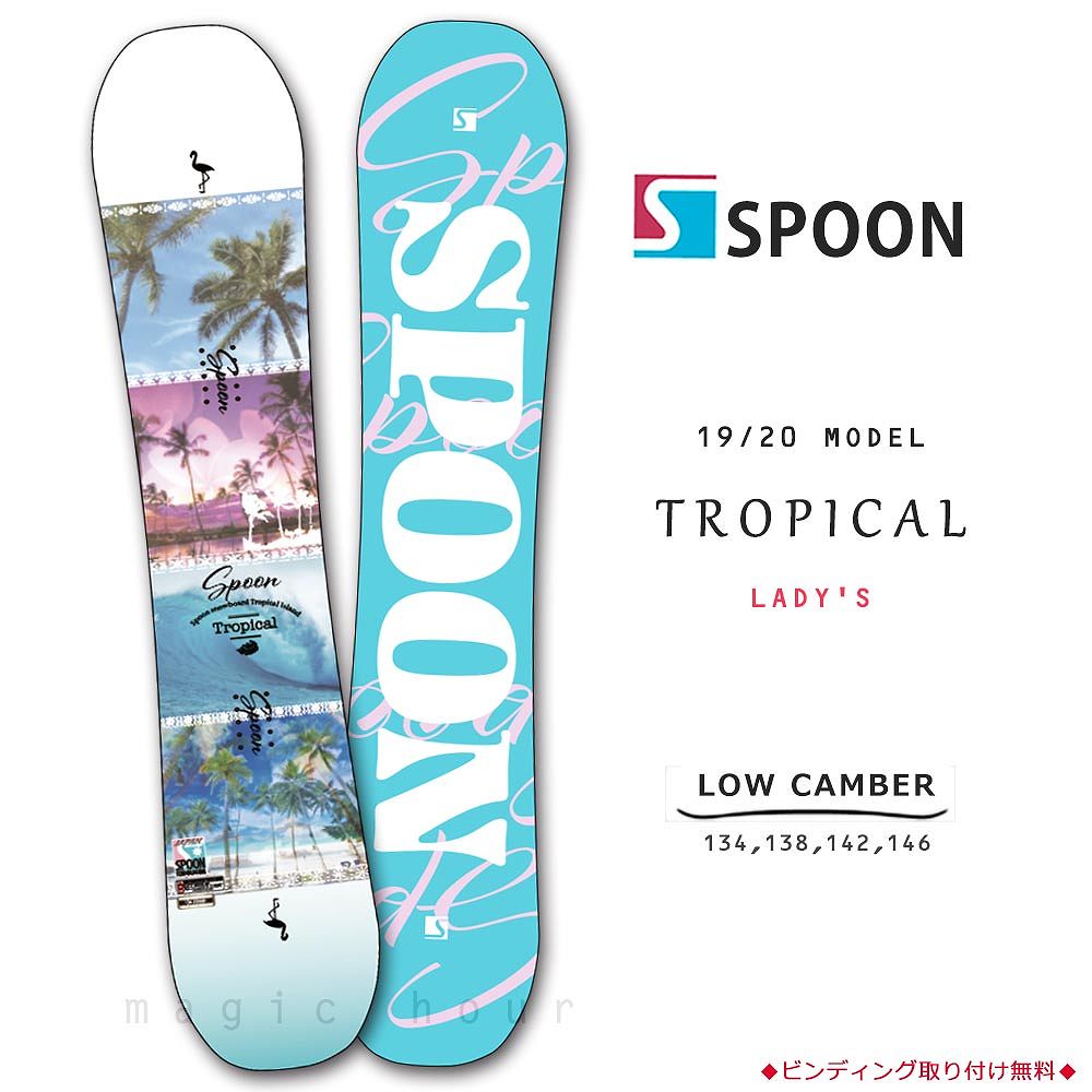 スノーボード 板 レディース 単品 SPOON スプーン TROPICAL スノボー 初心者でも簡単 イージー イージー キャンバー ボード 白 ホワイト ピンク かわいい